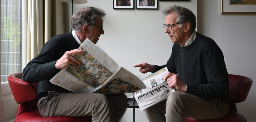 Enige tijd geleden ben ik een serie gestart, met als werktitel “The two of me“. Ik probeer daar plaatjes te construeren waarin ik met mezelf in interactie ben. Ik combineer steeds twee foto’s waarop ik in verschillende posities deelneem aan een activiteit.