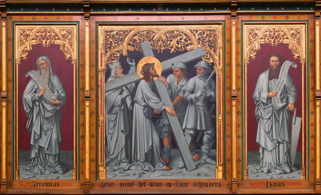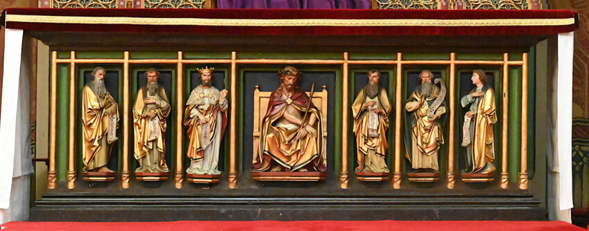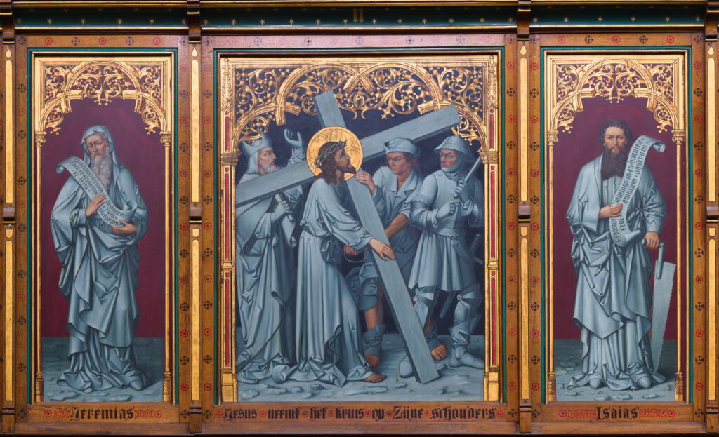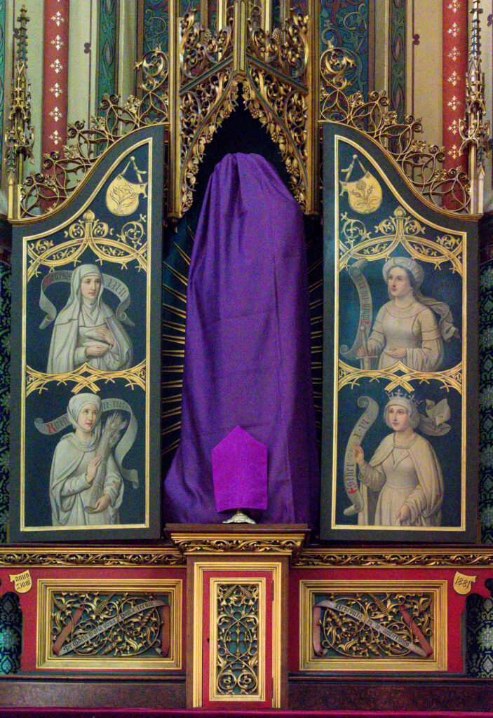 • Maria-altaar met gesloten luiken, maar Maria vanwege de Passietijd bedekt met een paarse doek, gemaakt op 18 maart, 2024